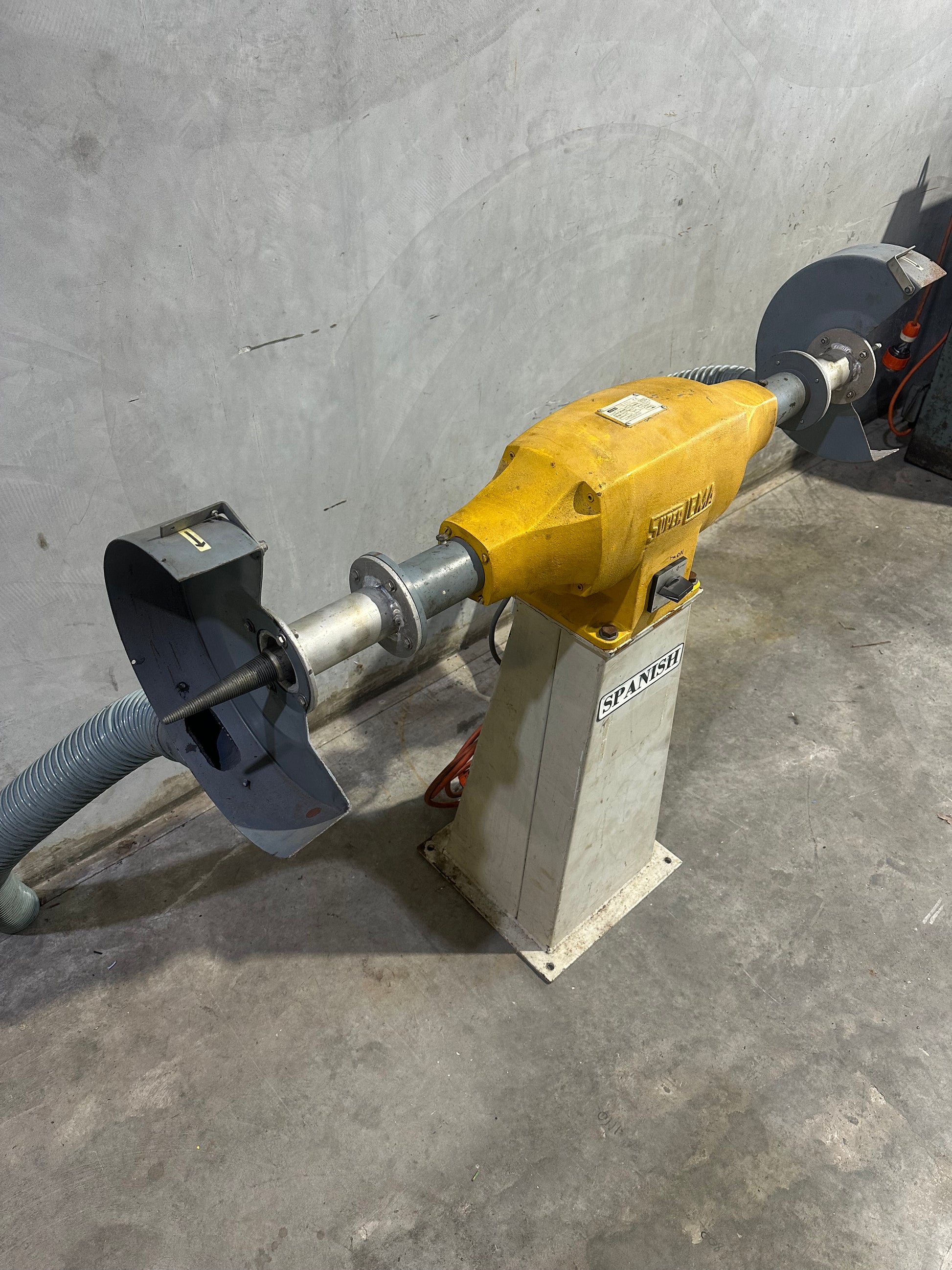 - takes a 300mm buffing wheel each side